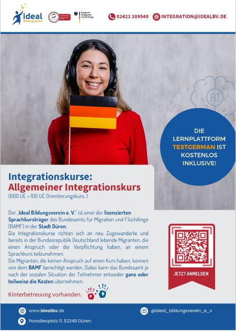 - BAMF-zertifizierte Integrationskurse (A1–B1)